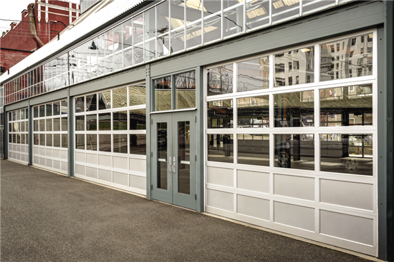 Overhead Door™ Aluminum Sectional Doors offer a variety of stile widths, glazing materials, track styles and finishing options. Taking into consideration visual access, light infiltration and aesthetics, aluminum sectional doors provide an attractive solution for commercial and industrial applications.
